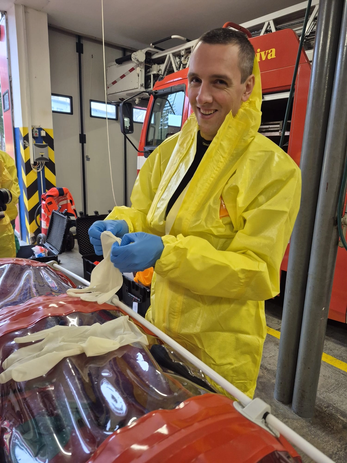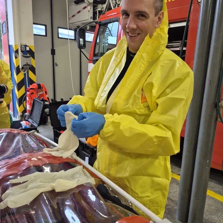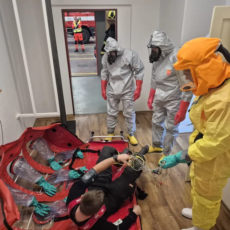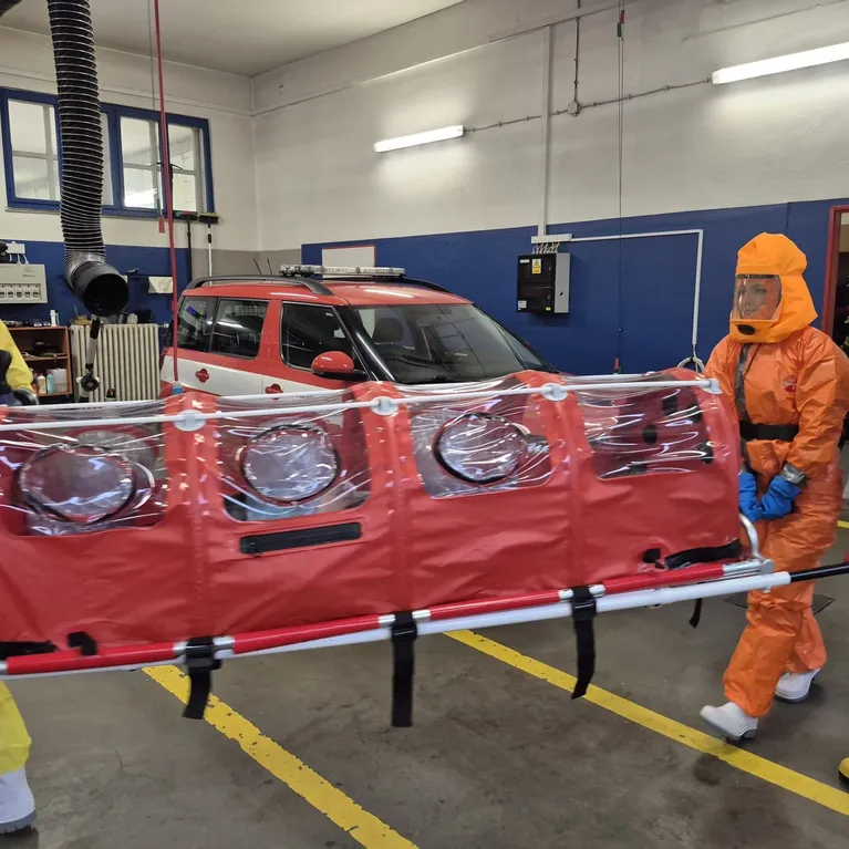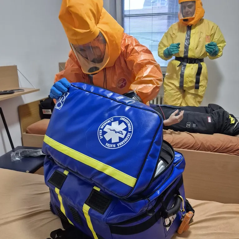 Jeden den, dva výcviky, dvě naprosto odlišné situace a místa zásahu vzdálená od sebe zhruba 35 kilometrů. Před pár dny se část z našich záchranářů se specializovanou způsobilostí podrobila náročnému výcviku. Dopoledne je v areálu hasičské stanice v Uherském Brodě čekal zásah u muže, který se vrátil z Rwandy. Pacient měl vysokou horečku, objevil se u něj i průjem. To znamená: Výcvik v ochranných oblecích, zajištění pacienta v izolačním vaku, perfektní dekontaminace posádky, která s nakaženým přišla do styku. V druhé – odpolední fázi – vstoupil do budovy Státního okresního archivu Zlín – Klečůvka ozbrojený muž, který postupně poranil několik osob.